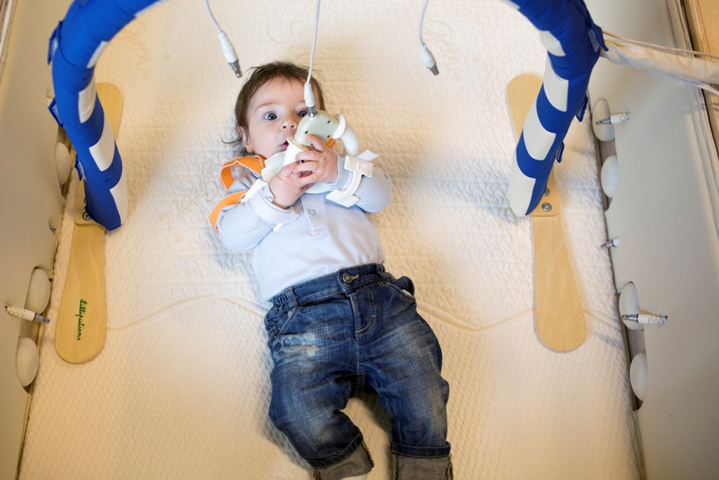 CareToy, la palestra biomeccatronica di tele-riabilitazione. “CareToy – spiega il professor Giovanni Cioni, ordinario di Neuropsichiatria Infantile, Università di Pisa e Direttore Scientifico IRCCS Fondazione Stella Maris – è una palestrina intelligente, ideata e sviluppata nell’ambito di un progetto europeo in collaborazione con l’Istituto di BioRobotica della Scuola Superiore Sant’Anna, in cui la tecnologia permette di portare a casa, già dai primissimi mesi di vita, il trattamento riabilitativo precoce, fondamentale per il futuro sviluppo di bambini a rischio di paralisi cerebrali. Oltre 2000 sensori, integrati nel sistema CareToy, permettono di misurare e monitorare a domicilio il comportamento dei bambini. Questi dati vengono trasmessi attraverso la rete al centro clinico, dove medici e terapisti seguono il loro andamento, sostenendo le attività di gioco più adeguate allo sviluppo che i genitori potranno svolgere quotidianamente con il bambino. In questo modo a casa e semplicemente giocando con i genitori è possibile per i bambini nati con dei problemi contribuire ad allontanare il rischio di sviluppo nel tempo di disturbi neurologici, o quantomeno ridurne la gravità. La palestrina CareToy, esposta anche alla stazione Leopolda per gli aspetti bioingegneristici, è stata sperimentata su un ampio gruppo di bambini nati pretermine con risultati scientifici, pubblicati su riviste internazionali ad alto impatto, che ne hanno dimostrato l’efficacia nella promozione dello sviluppo psicomotorio. Proprio in questi giorni ha preso il via nella Regione Toscana, in collaborazione con l’AOUP e l’Ospedale Meyer, la sperimentazione clinica del sistema in bambini con lesioni cerebrali”. Nell’ambito del progetto CareToy verrà inoltre in esibizione una piattaforma clinica computerizzata dedicata allo studio quantitativo della funzionalità visiva nei primi mesi di vita, indice precoce ed altamente predittivo del futuro sviluppo neuropsicomotorio.